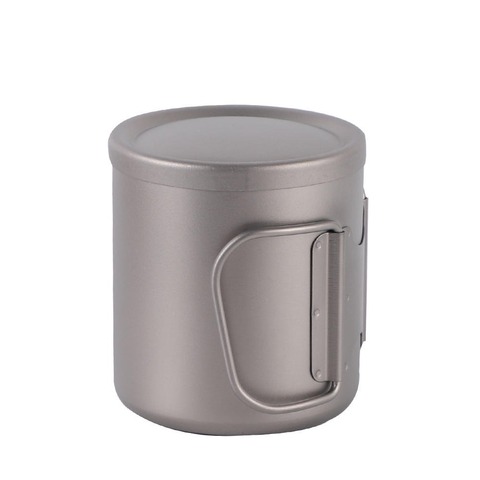 ถ้วยไทเทเนียมพับได้สำหรับตั้งแคมป์กลางแจ้งพร้อมที่จับและฝาสำหรับถ้วยชาและจานรอง